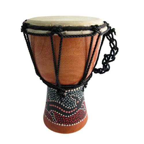 This is the biggest of our gift sized djembes, its a perfect gift for bringing rhythm to somebody's life, whilst small enough to not take over the room. This drum is hand painted so designs will vary.