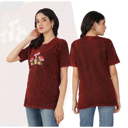 Cotton Short Sleeve T-shirt with emroidered mushroom design.