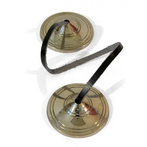 Simple but elegant shiny chimes on chunky leather cord. These pair of chimes produce a soothing long tone when struck and are available at a great budget price. Tingsha bells are two small cymbals that are used by Buddhists during prayer and meditation. The cymbals are generally joined together by a leather strap and produce a clear, high pitched ringing tone when struck together.