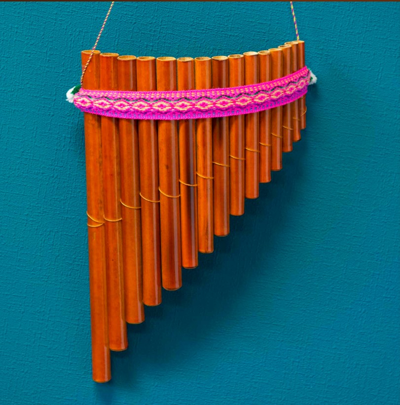 These beautiful sounding instruments, sometimes known as Zampoña, are a traditional folk instrument from Peru. By blowing across the top of any of the fifteen pipes, a pleasing tone is produced.