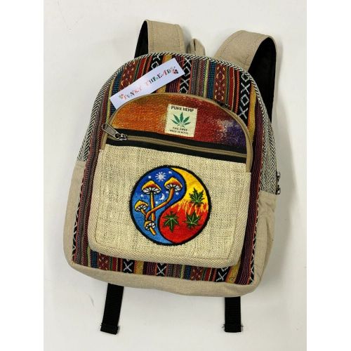 Small hemp backpack with spiral Yin Yang design.